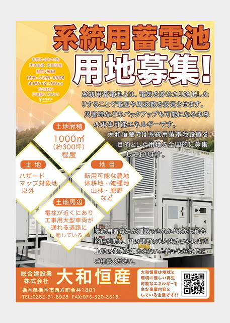 株式会社大和恒産では、太陽光発電所の建設を中心に、土木工事・外構工事などを取り扱う総合建設会社です。